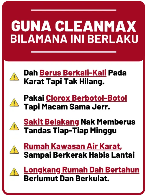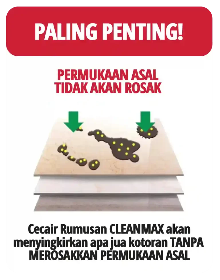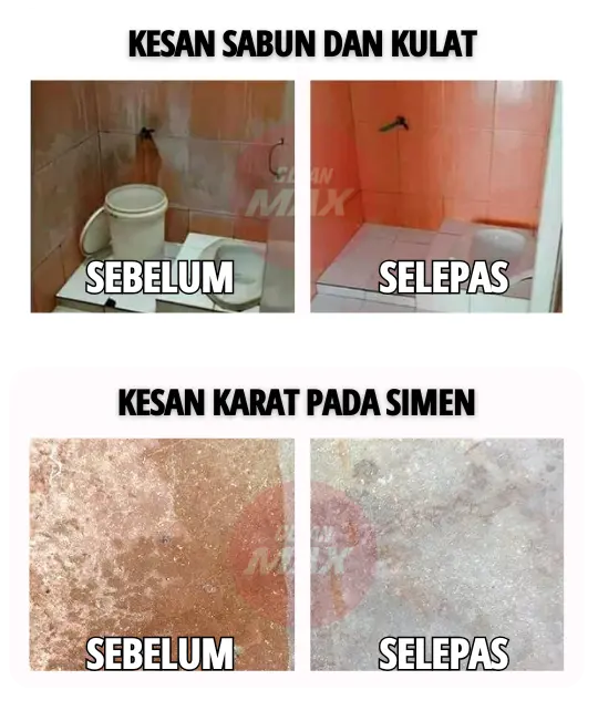 ” Ya memang akan tanggal, sebab kesan Cleanmax ni sangat kuat. Sebab tu berape kali sembur je, kulat memang akan