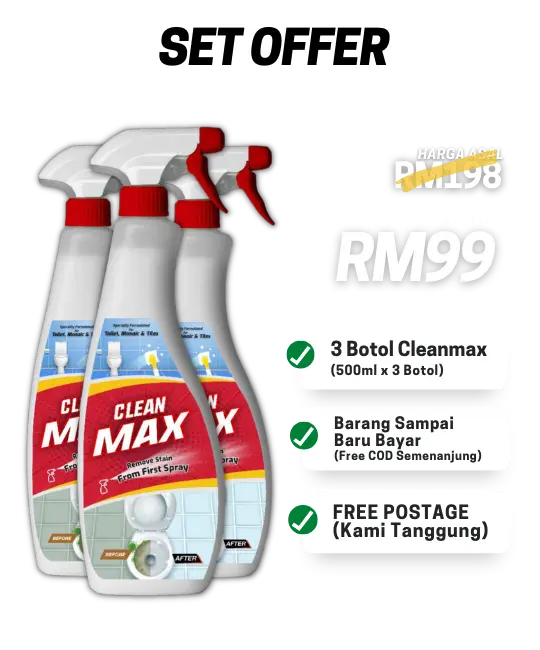 ” Sebotol Cleanmax mengandungi 500ml. Paling Penting, Cleanmax 2X Ganda Lebih Pekat Dari Brand Lain. Memang sangat sesuai untuk bagi tandas nampak Cantik & Bersih. “