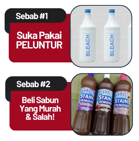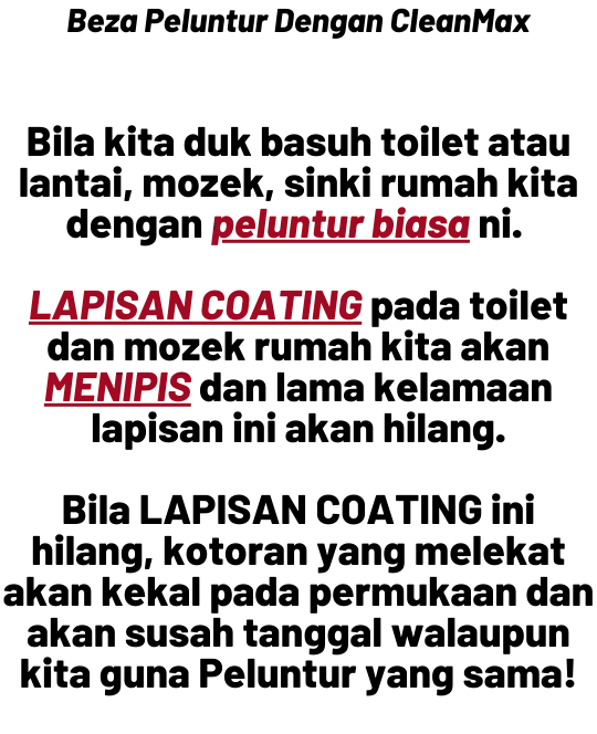 ” Oleh kerana kesan Cleanmax sangat kuat, warna pada pakaian akan luntur. Jangan bagi sampai terkena pakaian. “